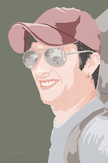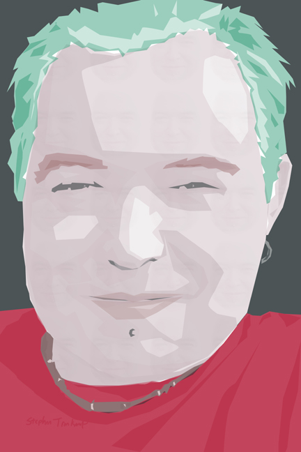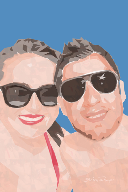 This series of digital paintings uses candid photographs from social situations that I then convert to drawings by using flat shapes with hard edges to capture a face in an abstract yet accurate way. Converting these digital photographs into digital drawings opens the door for artful exclusion, and moody color selection, and ultimately allows the viewer to experience a person or pose with a perspective that the unfeeling lens of a digital camera cannot offer.