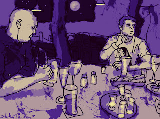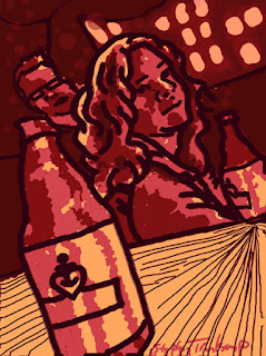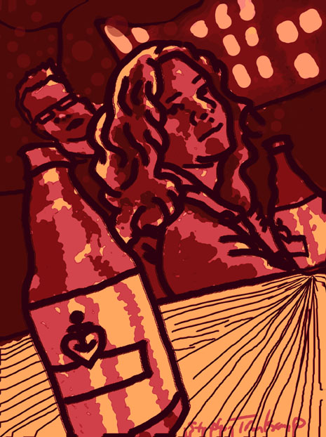 This series of portraits are based on photographs taken with my digital camera while traveling through Germany. It was a wild and indulgent trip full of delicious foods and beverages offered to us by some of the most hospitable and fun loving people I have ever met. These images are intentionally distorted, bordering on the edge of surreal and are full of digital splatters that echo the delicate balance between the controlled party atmosphere and total ruinous mayhem.
